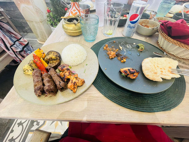Abbiamo ordinato Grand Tete.....sarei potuta arrivarci....ma in quel momento il cervello era obnubilato dalla fame...insomma ci siamo mangiati un mix di testa di capra. Per fortuna, in preda a un flu d'antologia, non riuscivo a sentire il gusto...il mio compagno di viaggi si è spazzolato sia il suo piatto che metà del mio...