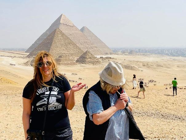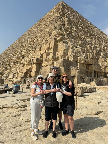 Ovviamente il volo Milano Il Cairo era in ritardo, siamo arrivati alle 2 del mattino...alle 6 sveglia per iniziare il tour!povere mamme, sopratutto la mia, era distrutta!per fortuna il transfer ci aspettava all'aereoporto e la guida con transfer ci aspettava la mattina! Andiamo subito verso le piramidi e la guida ci porta ai piedi dell'ingresso del sito archeologico, a 100 metri dalle piramidi!questo è un punto da ricordare perchè dal 2025 non è più possibile girare il sito in autonomia, ma ci sarà una sorta di trenino che farà fare il giro. oVVIAMENTE GLI INGRESSI ERANO TUTTI GIà PAGATI DALL'ITALIA E inclusi, quindi non ho informazioni precise su questo.