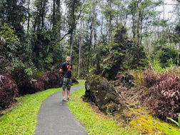 Decidiamo di andare avanti e difermarci al Lava Tree state monument e di continuare la strada fino alla costa al punto più a sud, e la strada che abbiamo percorso, e che avevamo percorso anche nel 2017, è dal mio punto di vista la strada più bella di tutte le Hawaii. Stiamo parlando della zona a sud della regione di Hilo ovvero Puna che da un lato confina con quella di Kau dove si trova il vulcano attivo Kilauea. E proprio la vicinanza del vulcano ha formato e modificato il paesaggio lasciando segni suggestivi ed effetti creati dalla lava. Le particolari formazioni all’interno del Lava Trees State Park (HI-132, Pahoa) sono state prodotte dalle colate laviche espanse nel tempo fra gli alberi e la vegetazione, formando un “giardino di sculture”.